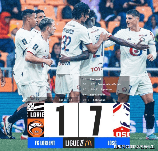 法甲又爆冷!洛里昂1-7里尔:半场崩盘追平队史最惨失利纪录